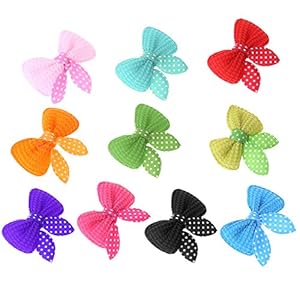 Demiawaking 10pcs Pet Cat Dog Dots Knotbow Hair Clips Grooming Hairpin Mixed Color Ribbon Hair Bow for Dog