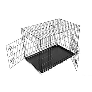 FoxHunter 42″ 42 Inch Pet Dog Puppy Cat Training Cage Crate Carrier Metal Folding With Two Door and Tray X-Large Black New