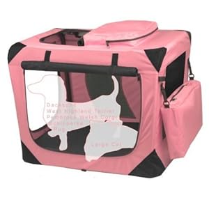 XL PET FOLDING PINK CANVAS CARRIER TRANSPORT CRATE 32IN