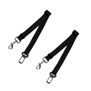2 x Sundlight Adjustable Pet Dog Cat Safety Seat Belt, Car Restraint Travel Clip Lead Leash, Black