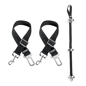 Dog Seat Belt for Cars, JVSURF 2 Pack Dog Cat Pet Adjustable Safety Car Seatbelt Vehicle Lead Leash, Durable Harmless Nylon Fabric Material, with 1 Dog Training Door Bell
