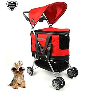 FoxHunter New Red Dog Puppy Cat Pet Travel Stroller Pushchair Pram Jogger Buggy With Two Front Swivel Wheels And Rear Brake