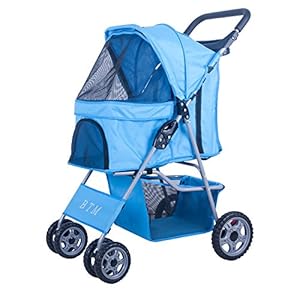 BTM Pet Stroller Cat / Dog Easy Walk Folding Travel Carrier Carriage – Newly Designed (BLUE)