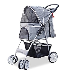 PetsN’all Foldable Dog Stroller|durable lightweighted stainless steel frame 6-Wheel with Safty Brakes|82 x 37.31 x 97 cm-Gray