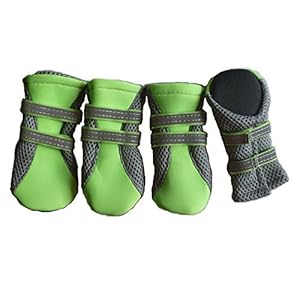 Vibrant Fellow Paw Protector Dog Boots Breathable and Skid-proof with Reflective Velcro Straps Bright Green Size Small and Medium Set of 4