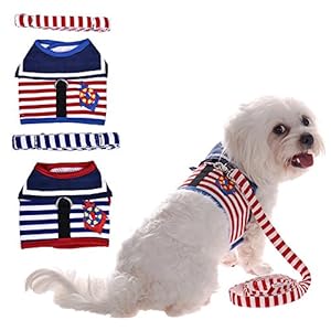 Cute Small Puppy Cat/Dog Safety Walking Cotton Sailor Vest Harness Matching Lead Leash Set