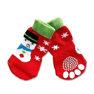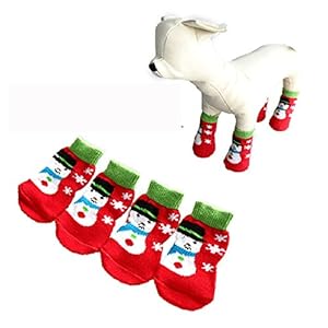 Oyedens 4Pcs Christmas Pet Dog Socks Cartoon Snowman Puppy Non-slip Warm Socks