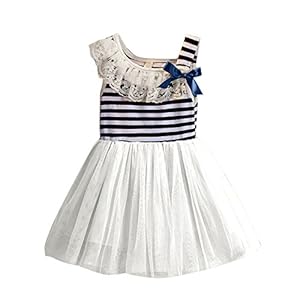 Bluester Baby Girls Striped Clothing Bowknot Sleeveless Dress Princess Party Kids Clothes