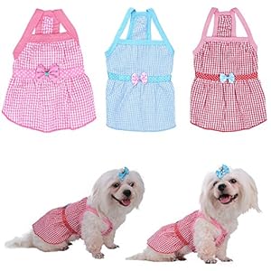 Idepet Cat Dog Clothes Sleeveless Plaid Tartan Pet Dress Puppy Cat Princess Tutu Dress Bow Bubble Skirt Doggie Vest Shirts Dog Costumes Apparel For Spring Summer