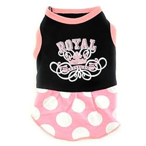 SMALLLEE_LUCKY_STORE Small Dog Clothes for Girls Summer Royal Crown Dress Dots Skirt,Black and Pink