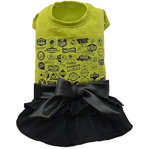 Doggy Dolly D292 Dog Dress with Print and Layer Skirt, Green/Black