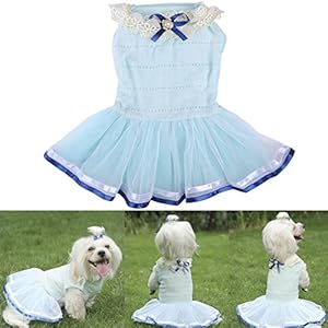 ESAILQ Dog Cat Flower Pattern Bowknot Tutu Lace Dress Pet Puppy Dog Princess Costume Apparel Clothes Blue