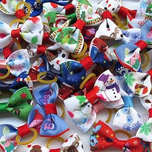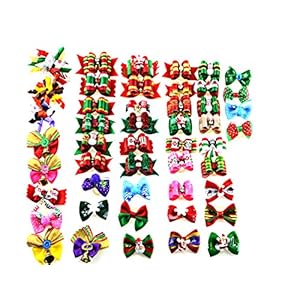 LILYS PET Christmas Styles Mixed Dog Hair Bows Pet Dog Cat Puppy Grooming Accessories Color Assorted