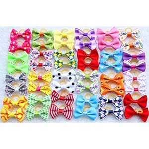 Yagapet 50pcs/25pairs Dog Hair Bows Topknot Mix Styles Small Bowknot with Rubber Bands Classic Plaid Style Top Quality Pet Grooming Products Dog Hair Accessories