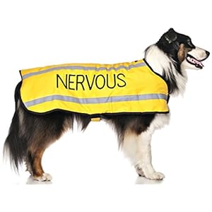 NERVOUS (Give Me Space) Yellow Colour Coded S M L Reflective Waterproof Fleece Lined Warm Dog Coats PREVENTS Accidents By Warning Others Of Your Dog In Advance