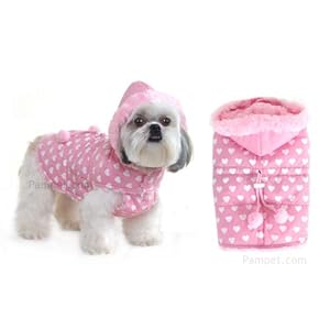 Dog Coat – Million Heart Hoodie PINK Raincoat,. Shower proof. Size 8″