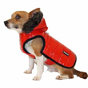 WATERPROOF DOG COAT MAROON FUR LINING RAINCOAT SIZE 16″