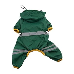WaWa Dark Green Hooded Four Legs Pet Raincoat with Safe Reflective Strip