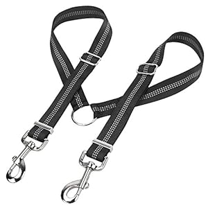 Peteast No-Tangle Double Dog Leash Coupler W Reflective Stitching , Adjustable Dog Lead Splitter for Walking and Traning 2 Dogs