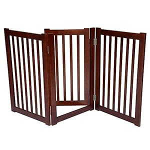 MDOG2 3-Panel Free Standing Pet Gate, 60-Inch Width by 32-Inch Height, Dark Walnut