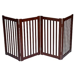 MDOG2 4-Panel Free Standing Pet Gate, 72-Inch Width by 32-Inch Height, Dark Walnut