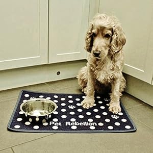 Dog Food Floor Mat Black Polka Dot Paw Absorbent