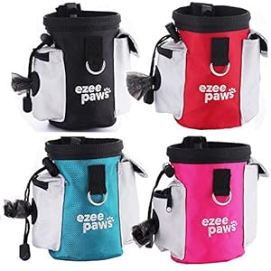 Ezee Paws Dog Treat Bag, Puppy Training Pouch with Poop Bag Holder and Dispenser – Includes Waist Clip and 1 Roll of Waste Bags