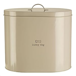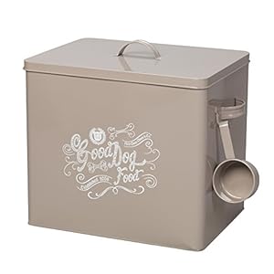 Protege Homeware Galvanised Steel / Natural Powder Paint 12 Litre Adore Pets Lucky Dog Food Storage Bin W/spoon
