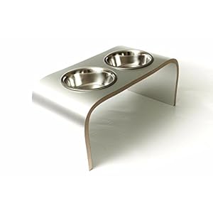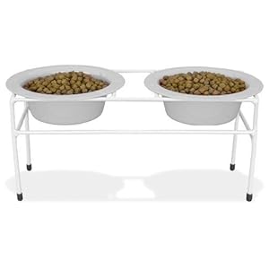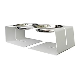 Platinum Pets White Modern Double Diner Stand, with Two 4 Cup Rimmed Bowls, White by Platinum Pets