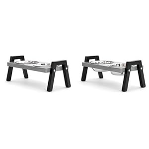Tierlando® Double Bowl with Removable Bowls Diameter 11cm/0.45in Antique Look Black and Silver Raised Dog Bowl Water Bowl Dog Bowl NA1SS