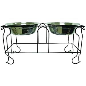 YML 10-Inch Wrought Iron Stand with Double Stainless Steel Feeder Bowls by YML