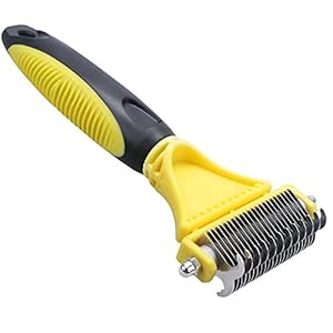 Pet Dematting Comb, QPAU Deshedding Brush Grooming Comb Remove Undercoat Hair Mats Great Tool for Dog Cat Rabbit and Horse Yellow