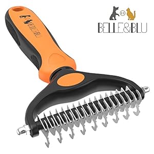 BELLE&BLU Pet Grooming Rake, Undercoat Rake | Dematting Comb For Dogs and Cats | De-Shedding Tool, Dog Brush | For Medium to Long Hair Breeds | Removes Loose, Dead Under-coat, Mats, Tangles, Knots, Fur