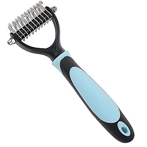Pet Dematting Comb with Safe Stainless Steel Blades, Safely and Easily Removes Undercoat Knots, Mats and Tangled Hair for Cats and Dogs
