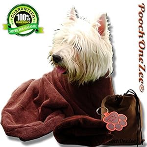 PoochOneZee® Dry Fast Dog Bag – Keep Water, Mud and Dirt Out of Your Home and Car – Super Absorbent Microfibre – Thick Velcro Neck Strap – Cozy Brown