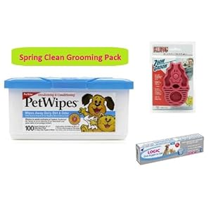 Spring Clean Grooming Pack: Petkin Wipes 100 Pack + Zoom Groom for Dogs + Logic Oral Hygiene Gel (inc. FREE Finger Toothbrush)
