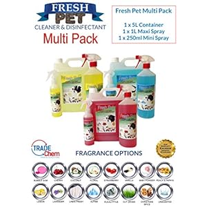 FRESH PET Pack Kennel/Cattery Disinfectant, VARIOUS FRAGRANCES 250ml Spray, 1L Spray Plus 5L