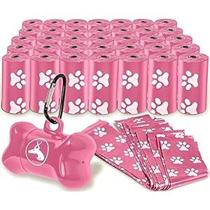 OxGord 1000 Pink Pet Dog Waste Bags for Poop Removal Disposal Heavy Duty with Leash Bone Dispenser and Leash Clip Compostable Disposal
