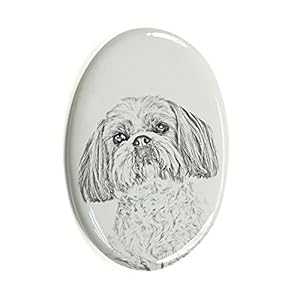 Shih Tzu, oval gravestone from ceramic tile with an image of a dog