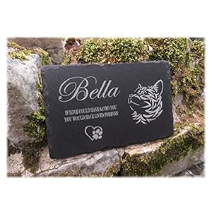Memorial Plaque Personalised Engraved Natural Slate Rectangle Shape Pet Grave Marker Cat Design
