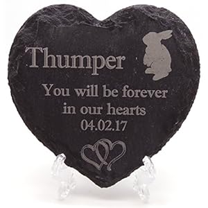 Personalised Engraved Natural Slate Heart, Pet Slate Memorial Plaque, Rabbit Pet Grave Marker.