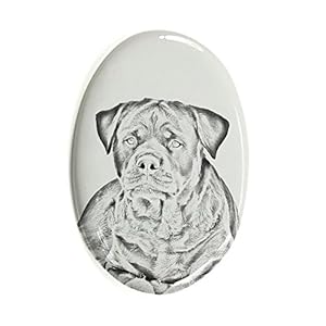 Rottweiler, oval gravestone from ceramic tile with an image of a dog
