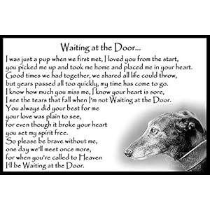 Greyhound Lurcher Whippet pet dog memorial Fridge Magnet – Waiting at the Door