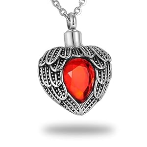 HooAMI Birthstone Angel Wing Heart Urn Pendant Necklace – Memorial Ashes Keepsake – Cremation Jewellery