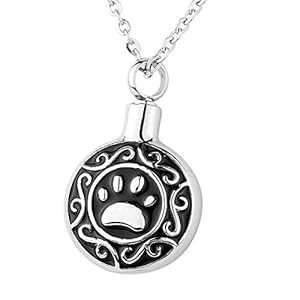 HooAMI Pet Paw Round Pendant Locket Cremation Urn Jewellery Ashes Keepsake Memorial Necklace