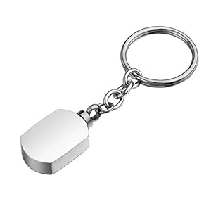 HOUSWEETY Pet Cremation Urn Keychain Silver Stamping Blanks Tags Heart Charm Cylinder Memorial Keepsakes Key Chains