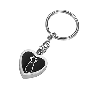HooAMI Stainless Steel Heart Glue Cat Diamond Detchable Waterpoof Cremation Keyring Pendant 6.8cm