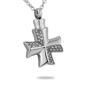 HooAMI Cremation Jewellery Crystal Quartered Cross Pendant Memorial Urn Necklace Ash Holder Stainless Steel