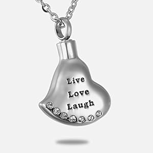 HooAMI “Live Love Laugh” CZ Heart Urn Necklace for Ashes Memorial Keepsake Cremation Pendant Jewellery