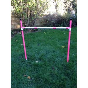 Pink stick in the ground dog agility jumps with fully adjustable height. (due to amazons new postage policy we can only post this item to mainland uk (England, Wales, and Scotland only))